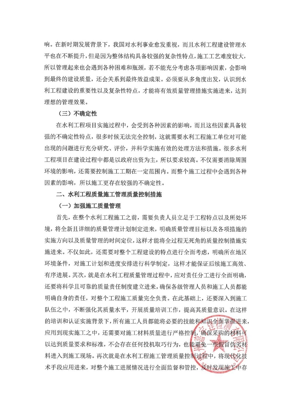 水利工程施工技术措施及水利工程施工技术管理